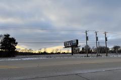 Rt. 40 and Hickory Grove Road, signalized intersection with busy traffic counts. Two billboards provide current income.